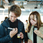 まずはテキーラ「サウザブルー」を使ったウェルカムカクテルで喉を潤すと、ゲストバーテンダーらが振る舞うカクテルを少しずつ味わいながら飲み比べをしている様子でした。