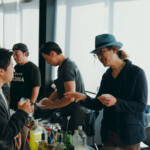 偶然にも会場外の広場で開催されていた南米にちなんだ音楽イベントが、ラテン・カリブのムードを後押しした当日。エントランスではまず「サウザブルー(協賛:サントリー)」「エスポロン(協賛:CT Spirits Japan)」「モンテロボス(同左)」を使った3種類のウェルカムカクテルでおもてなし。過去の開催と同じく、適切な飲酒を促すためにミネラルウォーターの「ヴィッテル(協賛:日仏貿易)」を全来場者に配布しました。