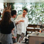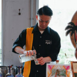 ゲストバーテンダーによるカクテルは、マンゴーやパッションフルーツなどのフルーツのほか、グラニテやエディブルフラワーなどを用いたものなどバラエティ豊か。来場者は、それらの香りをたしかめながら飲み比べを楽しんだり、カクテルのベースに使われているボトルを「武蔵屋」のブースで購入していく方も少なくありませんでした。