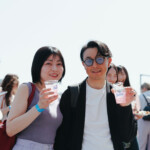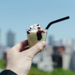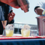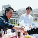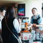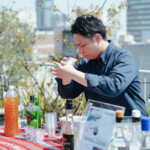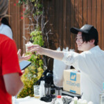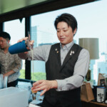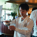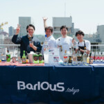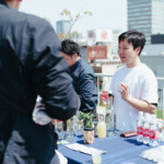 来場者は、過去の開催と同じく、適切な飲酒を促すために配布しているミネラルウォーターの「ヴィッテル(協賛:日仏貿易)」をエントランスで受け取ると、テラスに移動しウェルカムカクテルで乾杯。統括の2人によるカクテルは、それぞれ「シンガニ サン ペドロ(協賛:SudoWork)」「サウザブルー(協賛:サントリー)」をベースに、今までにないほど贅沢な仕上がりに。その美しい見た目を写真に収める方も多く見られました。